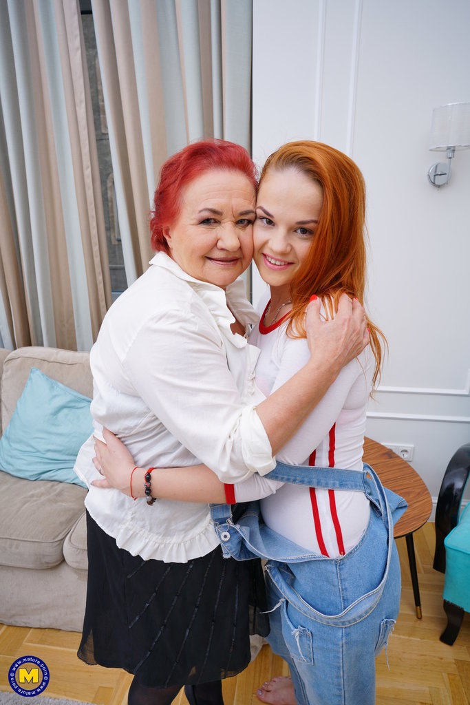 Granny Vabank Sterk with hairy vagina enjoys this redhead teen lesbian Red Linx